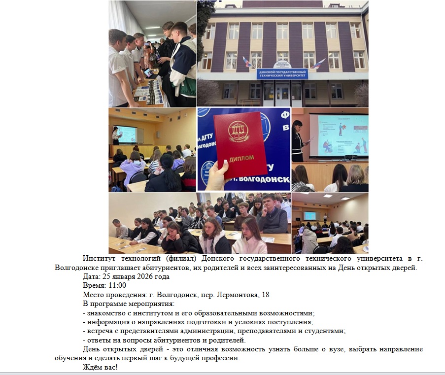 День открытых дверей в ИТ (филиале) ДГТУ в г. Волгодонске