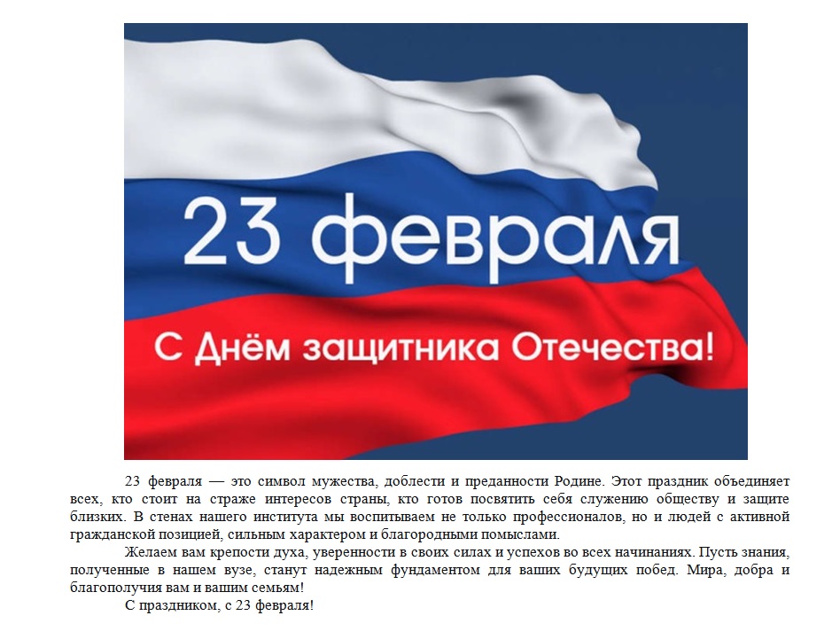 Уважаемые студенты, преподаватели и сотрудники! Поздравляем вас с Днем защитника Отечества!